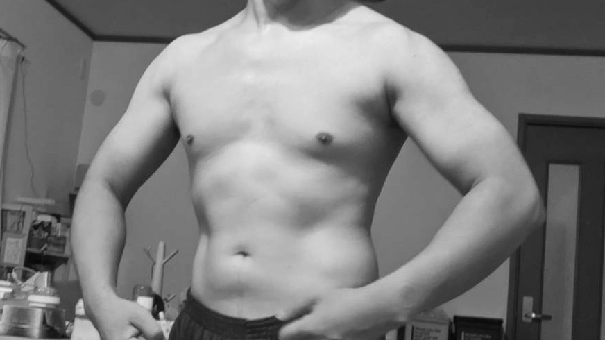 ひと月前に妻がふざけて撮った近影。ポーズとったらもっと筋肉デカく見せられそうだけど、それを撮り直すの躊躇われたのでこんくらいで...(´・ω・`)